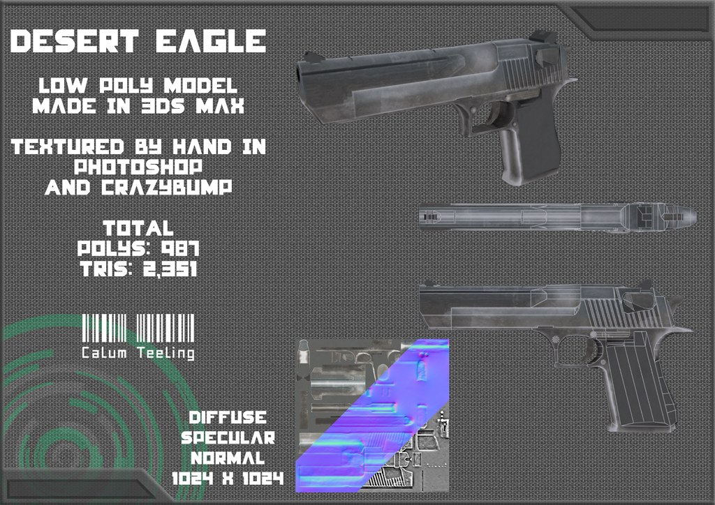 This was created in 3DS Max and textured with Photoshop. I also later created a normal map with crazybump.